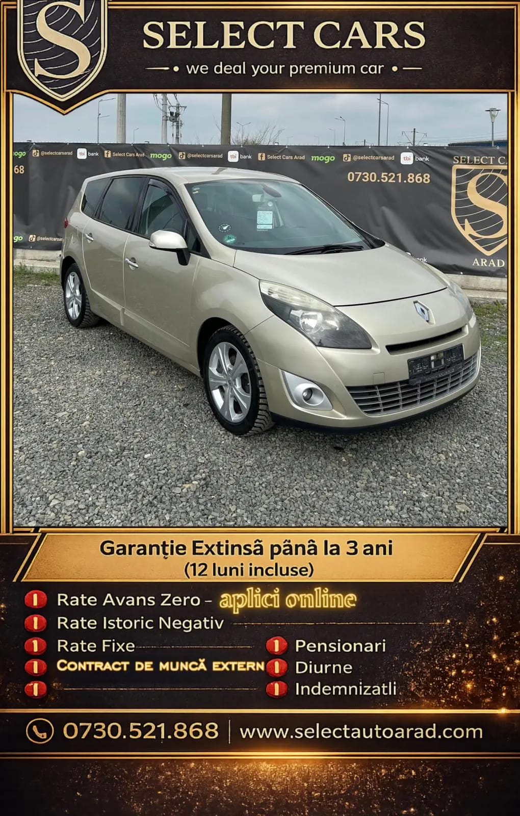 🥇La Select Cars Arad,oferim o GARANȚIE EXTINSĂ până la 3 ani,fără limita de km,la fiecare autoturism achiziționat din parcul nostru. Pe langă mai oferim: ❗️Numere Roșii GRATUITE pe o perioadă de 3 luni ❗️Verificare video de la distanță ❗️Mașini verificate cu istoric de service ❗️Rate Avans Zero-aplici din confortul casei ❗️Rate Istoric Negativ ❗️Rate Fixe ❗️Salariați străinătate ❗️Pensionari ❗️Diurne ❗️Indemnizații ❗️Buy-Back(anumite condiții) ❗️Asistență documente,inclusiv asigurare(la cerere) ❗️Garanție Extinsă până la 3 ani (12 luni inclusă) Renault Megane Scenic 2010 1.5 diesel 6 trepte,220.000km. Ca dotari: -7 locuri -senzori parcare -keyless go -sistem de navigare -perdelute spate - masute -pilot automat -oglinzi rabatabile electric -bord digital configurabil - 3.200€ 📲Vizualizează întreg stocul nostru,unde găsești peste 50 de oferte,accesând link-ul din secțiunea de comentarii✅ 📲🤝Rezervă mașina mult dorită✅Gamă variată de autoturisme ce pot fii finanțate online✅ Descopera o parte din stocul nostru 📲Pentru mai multe informatii,apel sau mesaj - 0730.521.868 si va stam la dispozitie cu orice informatie! #corectitudine #transparenta ‼️Dorești o mașină de calitate? Intră la noi pe site,pentru a viziona peste 50 de oferte la CELE MAI BUNE PREȚURI❗Verificate și testate,cu istoric de service/mentenanta efectuata,anvelope noi conform sezon si ❗incepand de la 1 August 2025,transport GRATUIT in limita a 300 km(fata de sediu)/diferenta contra-cost/numere rosii gratuite❗ ✅Ne gasiți în județul Arad,localitatea Vladimirescu,strada Iulia 2E-0730.521.868. 📲Program:Luni-Vineri:10.00-18.00 si Sămbăta:11.00-15.00